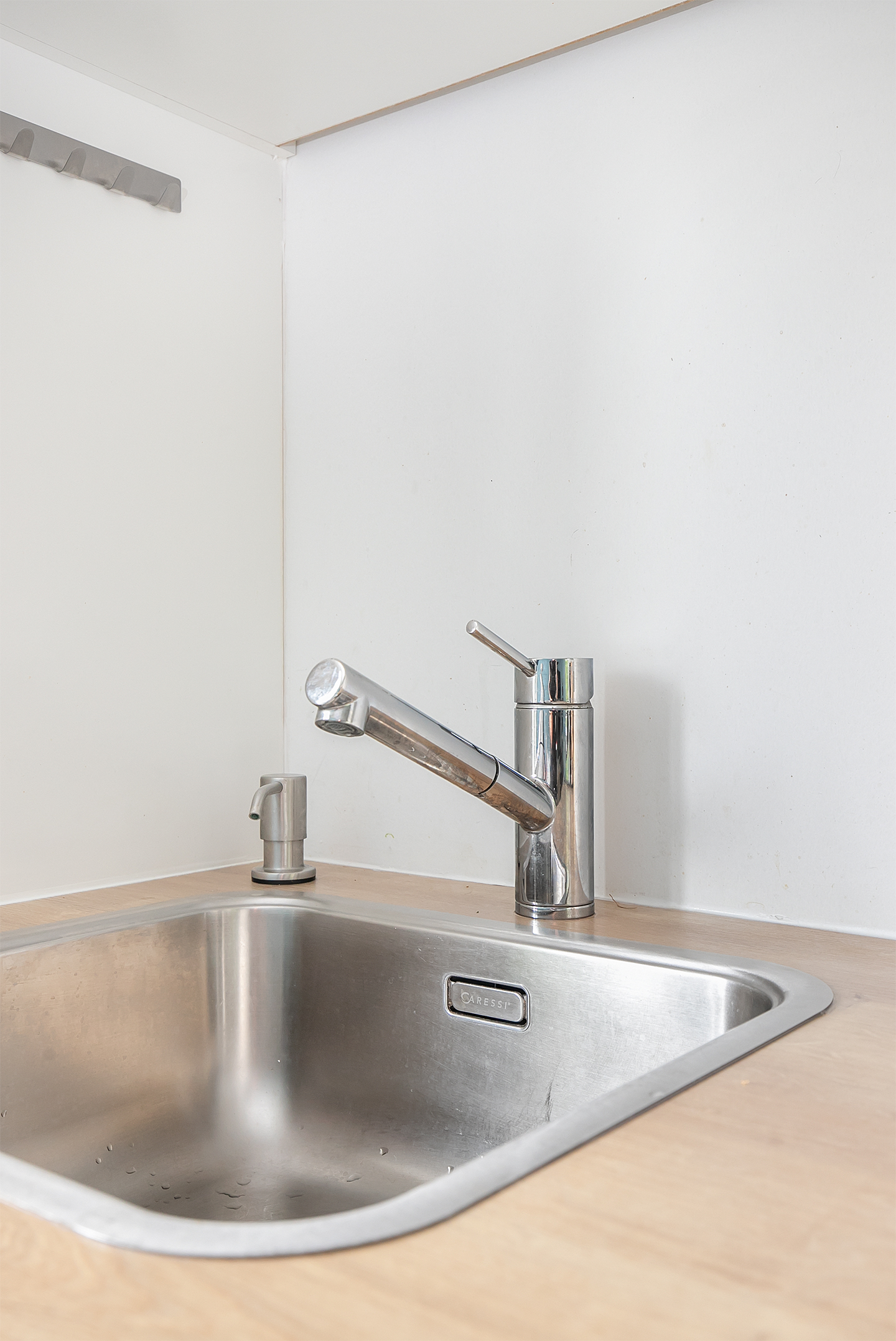 De badkamer is luxe en modern ingericht, met witte en grijze betegeling. Hier kun je heerlijk ontspannen met een fijn ligbad, douche in bad, een wastafel in een meubel en een zwevend toilet. Tevens vind je hier de aansluiting voor de wasmachine en droger. Via de badkamer heb je toegang tot een van de balkons. De slaapkamer biedt met zijn circa 10 vierkante meter voldoende ruimte voor een tweepersoonsbed en een kledingkast. Vanuit hier heb je ook toegang tot het tweede balkon.